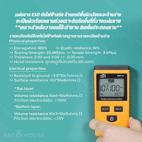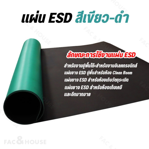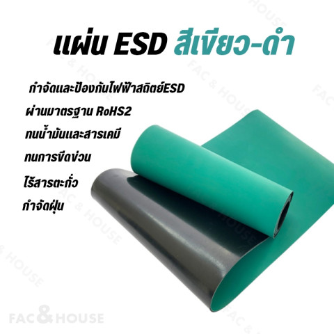 แผ่นยาง ESD สำหรับงานอิเล็กทรอนิกส์ ช่วยลด/ป้องกันไฟฟ้าสถิตที่อาจทำให้อุปกรณ์เสียหาย เหมาะสำหรับปูโต๊ะซ่อมอุปกรณ์ โต๊ะคอมพิวเตอร์/CPU หรือพื้นที่ทำงานที่ต้องการความปลอดภัยด้านไฟฟ้าสถิต ใช้งานได้จริงในโรงงาน ห้องแล็บ และงาน DIY