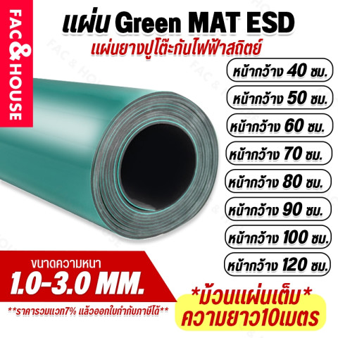 (ยกม้วน) ยางกันไฟฟ้าสถิต Table Mat ปะเก็นยางกันฟ้าสถิต (เขียว-ดำ) ESD Green Mat Antistatic แผ่นยางปูโต๊ะรองกันไฟฟ้าสถิต