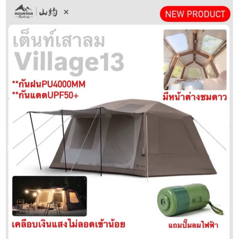 🔥พร้อมส่งทันทีใน 24 ชม.🔥 Mountain เต็นท์เสาลม Village13 รุ่นใหม่‼️ เต็นท์ขนาดใหญ่ตอบโจทย์สายแคมป์ที่ต้องการพื้นที่ “2 นอน 2 นั่งเล่น” อยู่สบายทั้งครอบครัวหรือแก๊งเพื่อน กางง่ายด้วยระบบ เสาลมรุ่นใหม่ พร้อมแถม ปั๊มลมไฟฟ้า ใช้งานสะดวก รวดเร็ว เหมาะทั้งทริปทะเล ภูเขา และลานกางเต็นท์ทั่วไป