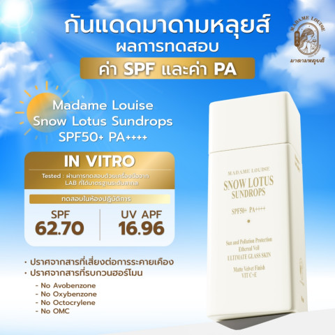 1) ครีมกันแดด มาดามหลุยส์ สโนว์ โลตัส ซันดรอป SPF 50+ PA++++