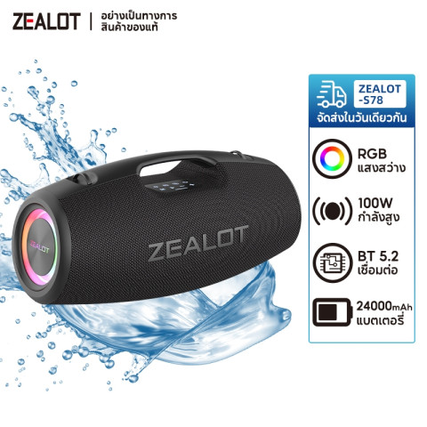 ZEALOT S78M ลำโพงบลูทูธพลังสูง 250W แบตอึด 24000mAh พร้อมโหมดคาราโอเกะไร้สาย เหมาะทั้งปาร์ตี้ในบ้านและกิจกรรมกลางแจ้ง ให้เสียงเบสลึกแน่นด้วยไดรเวอร์คู่ จัดเต็มความสนุกได้ยาว ๆ พร้อมความทนทานระดับ กันน้ำ IPX6