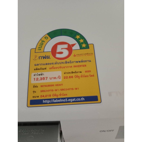 SRK24YYS 24,215 BTU | SEER 22.66 | เหมาะกับห้อง 28-40 ตร.ม. | เบอร์ 5 ⭐⭐⭐