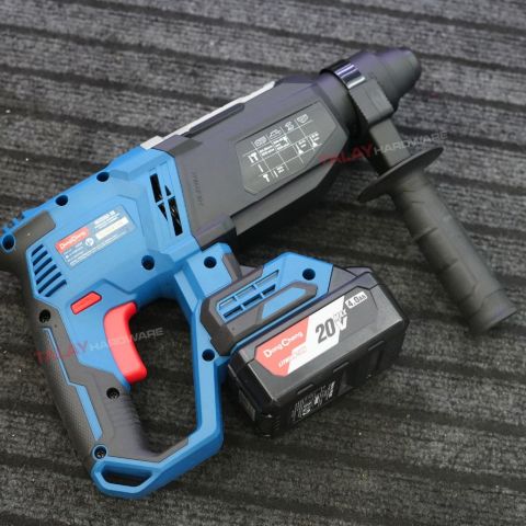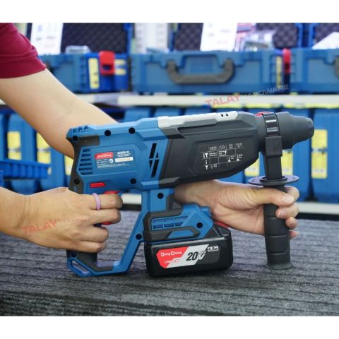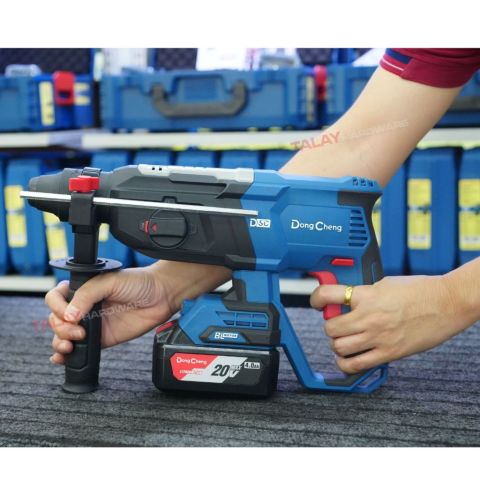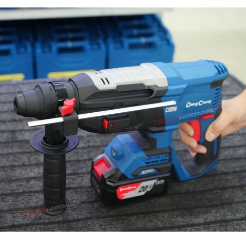 Dongcheng(DCดีจริง) DCZC02-26 สว่านโรตารี่ไร้สาย 3 ระบบ 20V ตัวจบงานเจาะ-สกัดแบบพกพา เหมาะทั้งช่างมืออาชีพและงานติดตั้งทั่วไป ใช้งานคล่องตัว ไม่ต้องพึ่งปลั๊กไฟ ให้แรงกระแทกหนักแน่น เจาะคอนกรีตได้ถึง 26 มม. พร้อมแบต 20VMax 4.0Ah มาให้ 2 ก้อน ทำงานต่อเนื่องได้ยาวขึ้น