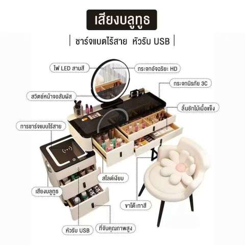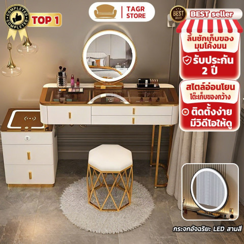 TAGR โต๊ะเครื่องแป้งอัจฉริยะพร้อมกระจกไฟ LED ดีไซน์ยุโรปสุดหรูที่ยกระดับมุมแต่งหน้าของคุณให้ดูแพงและเป็นระเบียบในทันที มาพร้อมฟังก์ชันอัจฉริยะทั้งชาร์จไร้สายและลำโพงในตัว ใช้งานได้ทั้งเป็นโต๊ะเครื่องแป้งและโต๊ะข้างเตียง เติมความสะดวกสบายให้ทุกวันของคุณในราคา 5,756.43