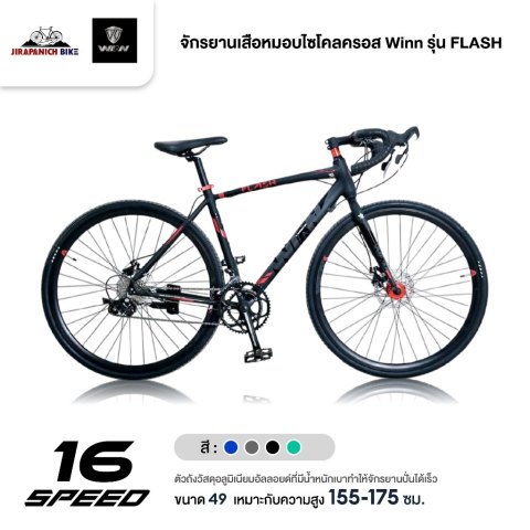 จักรยานเสือหมอบไซโคลครอส Winn รุ่น FLASH (อัลลอยด์, ดิสก์เบรค, เกียร์มือตบไมโครชิพ 16 สปีด ใต้หวัน) จักรยานสายลุยสำหรับคนที่อยากได้ทั้งความเร็วแบบเสือหมอบ และความแกร่งแบบเสือภูเขา ในคันเดียว เหมาะทั้งทางเรียบ ทางฝุ่น และเส้นทางวิบากเบาๆ ให้คุณสนุกกับการปั่นได้ทุกวันในราคาคุ้มค่า เพียง 9,545 บาท