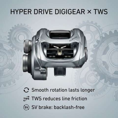 รอกตกปลา DAIWA 21 Alphas SV TW (2021) – รอกเบทคาสติ้งโลหะทั้งตัว น้ำหนักเพียง 175 กรัม ที่ออกแบบมาสำหรับนักตกปลาที่ต้องการทั้งระยะตีที่ไกล ความลื่นไหล และการควบคุมสายที่มั่นใจ มาพร้อมเทคโนโลยีระดับเรือธงของ DAIWA อย่าง TWS, HYPER DRIVE DIGIGEAR และระบบเบรก SV Concept ที่ช่วยลดการตีกลับของสายได้อย่างยอดเยี่ยม ใช้ได้ทั้งเหยื่อเบาและเหยื่อหนัก เหมาะสำหรับปลาเบส ปลาไพค์ และการตกปลาทะเล
