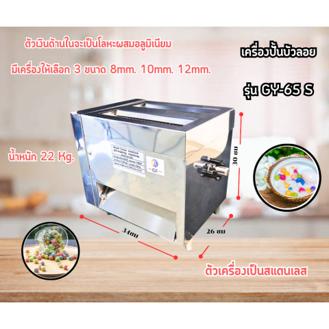เครื่องปั้นบัวลอย GY-65S ตัวเครื่อง 2 สี ราคา 9,500.00 บาท ออกแบบมาเพื่อช่วยให้การปั้นเม็ดบัวลอย/เม็ดไข่มุกเป็นเรื่องง่าย รวดเร็ว และได้ขนาดสม่ำเสมอ เหมาะสำหรับร้านค้า ร้านอาหาร และธุรกิจ SME ที่ต้องการเพิ่มกำลังการผลิต พร้อมงานที่สะอาดและปลอดภัย