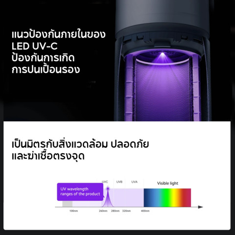 หลอด UV ในตัว ฆ่าเชื้อแบคทีเรียและไวรัสแบบเรียลไทม์ภายในเครื่อง ลดโอกาสเกิดมลพิษทุติยภูมิ
