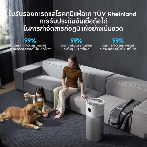 ได้รับใบรับรองการดูแลโรคภูมิแพ้จาก TÜV Rheinland ช่วยลด:สารก่อภูมิแพ้ในอากาศภายในบ้าน เช่น เกสร ฝุ่นละออง