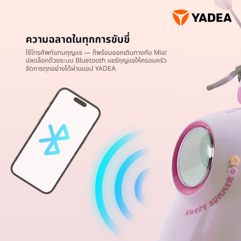 Yadea MIA จักรยานไซค์ไฟฟ้าดีไซน์น่ารัก ที่ผสานแฟชั่นและเทคโนโลยีไว้ในคันเดียว มาพร้อมระบบ Smart Keyless ใช้มือถือเป็นกุญแจได้ แบตเตอรี่กราฟีน TTFAR ลิขสิทธิ์เฉพาะจาก Yadea ที่ทนทานกว่าเดิมถึง 3 เท่า วิ่งไกลสูงสุดถึง 65 กม.* ต่อการชาร์จหนึ่งครั้ง ตอบโจทย์การใช้งานในเมือง ทั้งไปเรียน ไปทำงาน หรือขี่เล่นในวันสบายๆ