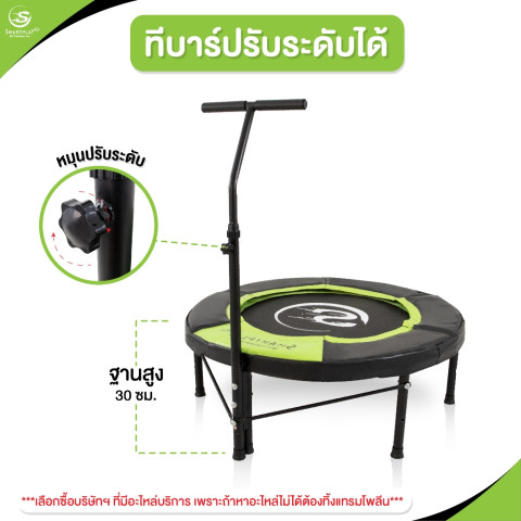 smartplayonly แทรมโพลีนเตียงกระโดด Super Bounce ขนาด 40 นิ้ว (100 ซม.) ออกแบบมาเพื่อการออกกำลังกายที่สนุก ปลอดภัย และช่วย ลดแรงกระแทกต่อข้อต่อ เหมาะอย่างยิ่งสำหรับ ผู้สูงอายุ หรือผู้ที่มีปัญหาเรื่องระบบข้อ/เข่า/การทรงตัว ใช้งานในบ้านได้สะดวก พร้อมบาร์ช่วยพยุง เพิ่มความมั่นใจทุกจังหวะการกระโดด