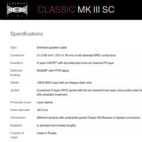 สายลำโพง TCHERNOV Classic MK III (สายเปล่าตัดแบ่งขายราคาต่อเมตร) จากร้าน All Cable สินค้าแท้ศูนย์ สำหรับผู้ที่ต้องการยกระดับระบบเสียงให้ได้รายละเอียดครบ มิติเสียงชัด และลดสัญญาณรบกวน เหมาะทั้งชุดเครื่องเสียงบ้านระดับจริงจังและงานติดตั้งที่ต้องการสายคุณภาพสูง โดยโครงสร้างเป็นสายลำโพงแบบมีชิลด์ (Shielded Speaker Cable) ช่วยเพิ่มความนิ่งของพื้นเสียงและความสะอาดของโทนเสียงเมื่อใช้งานร่วมกับอุปกรณ์ไฮเอนด์