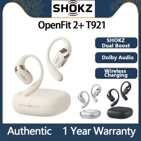 SHOKZ OpenFit 2 + T921 Dolby Audio (T920) หูฟังไร้สายบลูทูธแบบสวมเกี่ยวหู ดีไซน์เปิดหู ใส่สบาย พร้อมเสียงคุณภาพระดับโรงภาพยนตร์ด้วย Dolby Audio และเทคโนโลยีเสียงเฉพาะจาก Shokz ให้คุณฟังเพลง/ดูหนังได้เต็มอารมณ์ ขณะยังรับรู้เสียงรอบข้าง เหมาะทั้งออกกำลังกาย เดินทาง และใช้งานทุกวัน ด้วยมาตรฐานกันน้ำ IPX5 และระบบ AI ลดเสียงรบกวนที่กำหนดเอง เพื่อการคุยโทรศัพท์ที่ชัดเจนยิ่งขึ้น
