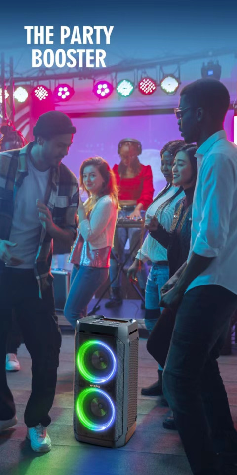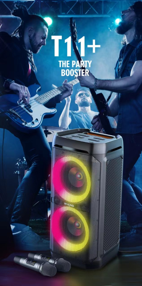 W-KING T11+ ลำโพงบลูทูธ 100W พร้อมไมโครโฟน 2 ตัว และไฟ LED สุดมันส์ ให้พลังเสียงกระหึ่ม เบสหนัก กลางแหลมชัด เวทีเสียงเปิดกว้าง เหมาะทั้งปาร์ตี้ ร้องคาราโอเกะ งานกิจกรรม หรือพกไปแคมป์ปิ้งแบบไม่ต้องกังวลเรื่องละอองน้ำด้วยมาตรฐานกันน้ำ IPX6 ในตัว