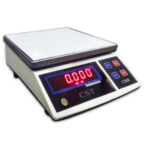 เครื่องชั่งดิจิตอลตั้งโต๊ะ CST รุ่น CDR Series ราคา 5,250.00 บาท เหมาะสำหรับงานชั่งในร้านค้า คลังสินค้า โรงงาน หรือพื้นที่แพ็กสินค้า ที่ต้องการความแม่นยำ อ่านค่าง่าย และเชื่อมต่ออุปกรณ์เสริมได้ พร้อมจานชั่งสแตนเลสแข็งแรง ทำความสะอาดง่าย ใช้งานได้ต่อเนื่องด้วยแบตเตอรี่ชาร์จไฟ