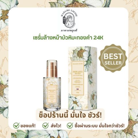 ปลดล็อกผิวกระจ่างใสไร้กาลเวลา เปล่งประกายออร่าแบบธรรมชาติ ด้วย มาดามหลุยส์ 🎊SNOW LOTUS 24K GOLD ❄️ เซรั่มล้างหน้าบัวหิมะทองคำ 24K (โปรเซรั่ม 6 ขวด) เซรั่มล้างหน้าระดับพรีเมียมที่ยกระดับการล้างหน้าให้มากกว่าการทำความสะอาด แต่เป็นการบำรุงผิวอย่างล้ำลึก เผยผิวกระจกเงา เนียนใส สุขภาพดีในขั้นตอนเดียว