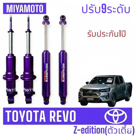 Miyamoto โช๊คอัพหน้า-หลัง ปรับ 9 ระดับ แกน 20 มิล สำหรับ Toyota Revo 2WD (ตัวเตี้ย) ปี 2015+ โดดเด่นด้วยฟิลลิ่งหนึบ นุ่ม เกาะถนน ลดอาการโคลงโยก ให้การขับขี่มั่นใจทั้งเปล่าและบรรทุกหนัก เหมาะสำหรับสายใช้งานจริงที่ต้องการอัปเกรดสมรรถนะการทรงตัวของรถ พร้อมราคาคุ้มค่าเพียง 3,303 บาทต่อชุด (หน้า-หลัง)