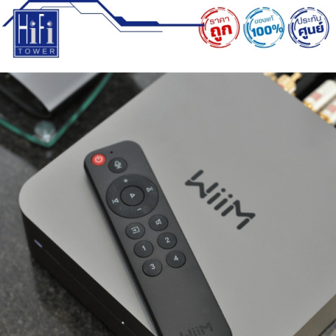 มาพร้อม WiiM Voice Remote ในกล่อง ใช้ควบคุมระดับเสียง เปลี่ยนอินพุต หรือเรียกคำสั่งเสียงได้ทันที