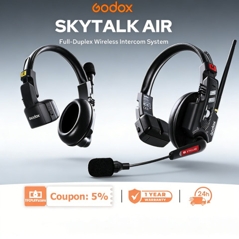 ยกระดับการสื่อสารทีมงานระดับมืออาชีพด้วย Godox SKYTALK AIR ชุดหูฟังระบบอินเตอร์คอมไร้สายแบบเต็มเพล็กซ์ ระยะ 500 เมตร ออกแบบมาเพื่อการทำงานโปรดักชันที่ต้องการความคล่องตัวสูง ทั้งงานภาพยนตร์ การแสดงสด งานอีเวนต์ และการถ่ายทอดกีฬา ให้การสื่อสารระหว่างทีมงานเป็นไปอย่างต่อเนื่อง ชัดเจน และไม่สะดุด