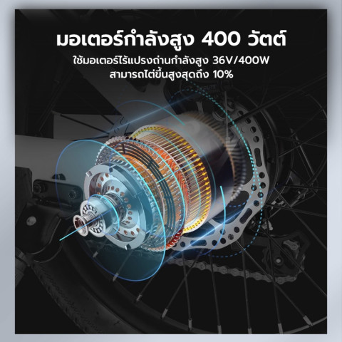 มอเตอร์: มอเตอร์กระแสตรงไร้ฟันแบบฮอลล์ (แม่เหล็กถาวร) กำลัง 400W แรงดัน 36V