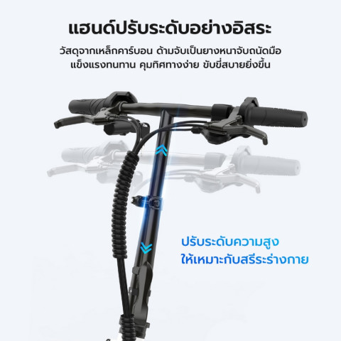 แฮนด์และเบาะนั่ง ปรับระดับความสูงได้อย่างอิสระ เพื่อท่านั่งที่สบายและเหมาะกับสรีระ
