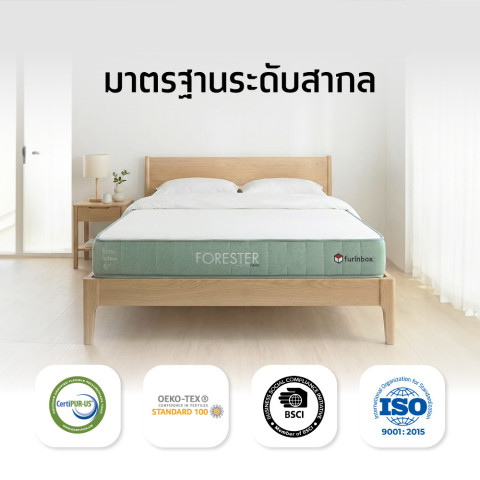 INDEX LIVING MALL ที่นอน รุ่นฟอเรสต์เตอร์ ขนาด 6 ฟุต หนา 8 นิ้ว สีขาว/เขียว คือทางเลือกที่ลงตัวทั้งด้านการรองรับสุขภาพหลัง ความสะดวกในการใช้งาน และดีไซน์ที่เรียบหรู เหมาะอย่างยิ่งสำหรับการยกระดับคุณภาพการนอนและการพักผ่อนในทุกคืนของคุณ