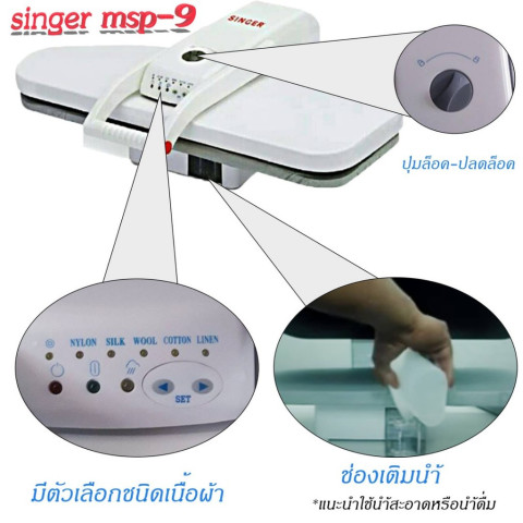 SINGER Steam Press รุ่น MSP-9 เครื่องรีดผ้าไอน้ำแบบกดทับพลังไอน้ำแรงดันสูง ที่ออกแบบมาเพื่อให้การรีดผ้าเป็นเรื่องง่าย รวดเร็ว และมืออาชีพยิ่งขึ้น เหมาะสำหรับทั้งใช้ในบ้านและร้านซักรีดขนาดเล็ก ช่วยให้ผ้าเรียบกริบไร้รอยยับในเวลาเพียงไม่กี่นาที ประหยัดเวลาและแรงกดได้อย่างมีประสิทธิภาพ