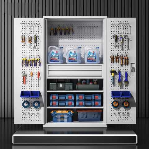 โครงสร้างแผ่นเหล็กหนา เหมาะกับการใช้งานต่อเนื่องในโรงงาน อู่ซ่อม หรือคลังอะไหล่ ให้ความมั่นใจในการจัดเก็บเครื่องมือและอุปกรณ์ต่างๆประตูคู่ เปิด-ปิดสะดวก