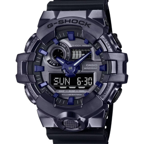 Casio นาฬิกาข้อมือผู้ชาย G-SHOCK รุ่น GM-700P-6ADR (สายเรซิ่น สีม่วง) คือความลงตัวของความแกร่งระดับตำนาน G-SHOCK กับความพรีเมียมของกรอบสเตนเลสในซีรีส์ G-STEEL ดีไซน์ตัวเรือนใหญ่สไตล์คลาสสิก โดดเด่นด้วยกรอบชุบไอออนสีม่วงตัดกับโทนเข้ม ให้ลุคเท่มีเอกลักษณ์ ใส่ได้ทั้งวันทำงานและวันลุย พร้อมปุ่มด้านหน้าที่ออกแบบมาเพื่อกดเปิดไฟ LED ได้ง่าย มองเห็นหน้าปัดชัดเจนแม้อยู่ในที่มืด