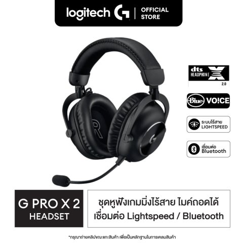 Logitech G PRO X 2 LIGHTSPEED Wireless Gaming Headset ชุดหูฟังเกมมิ่งไร้สายระดับโปร ที่ออกแบบมาเพื่อการแข่งขันจริงจัง ให้เสียงคมชัด แยกทิศทางแม่นยำ และสวมใส่สบายต่อเนื่องยาวนาน มาพร้อมไดรเวอร์ Graphene 50 มม. ถ่ายทอดรายละเอียดเสียงได้ครบทั้งย่านต่ำ-กลาง-สูง ลดความเพี้ยน เพิ่มความชัดของเสียงฝีเท้าและมิติในเกม พร้อม ไมค์แบบถอดได้ สำหรับสื่อสารชัดเจนหรือถอดเก็บเมื่อต้องการพกพา