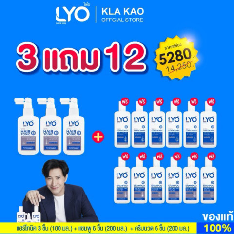 [ซื้อ 3 แถม 12] LYO - ไลโอ แฮร์โทนิค (100ML) 3 ชิ้น + แชมพู (200ML) 6 ชิ้น + ครีมนวดผม (200ML) 6 ชิ้น