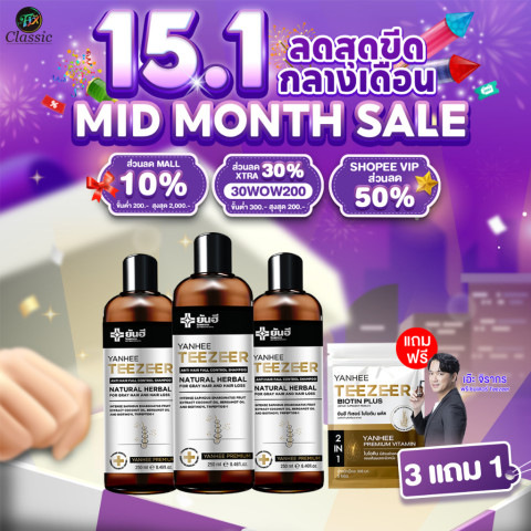 สูตรใหม่ Yanhee Teezeer Shampoo + Yanhee Teezeer Anti Hair Serum เซ็ตบำรุงผมครบขั้นตอน เพื่อผมดกดำ ลดผมร่วง ผมไม่แห้งแตก พร้อมรับฟรี Biotin วิตามินผม ในชุด คุ้มค่าในราคา 5,590.00 บาท เหมาะสำหรับผู้ที่ต้องการฟื้นฟูเส้นผมและหนังศีรษะอย่างจริงจัง ด้วยสูตรจากโรงพยาบาลยันฮี ช่วยดูแลตั้งแต่รากผมจนถึงปลายผม ให้ผมนุ่มลื่น เงางาม และดูหนาขึ้นอย่างเป็นธรรมชาติ