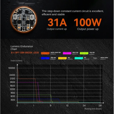 ความสว่างสูงสุด 8,000 ลูเมน ให้แสงแรง ชัดเจน ครอบคลุมพื้นที่กว้าง
