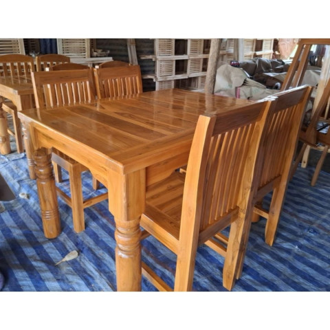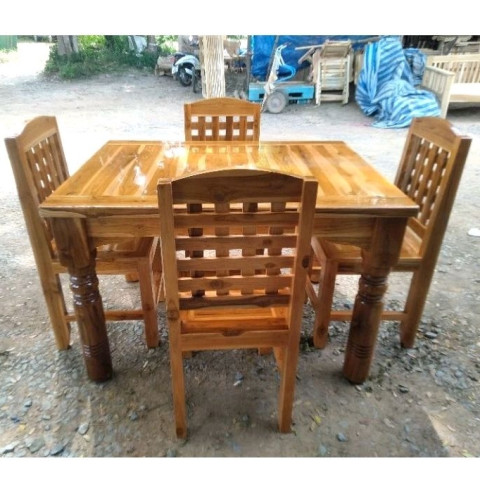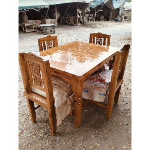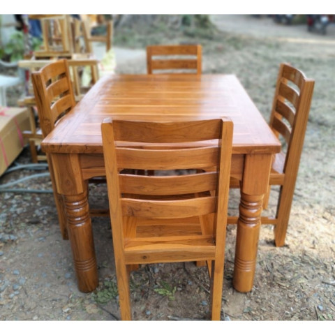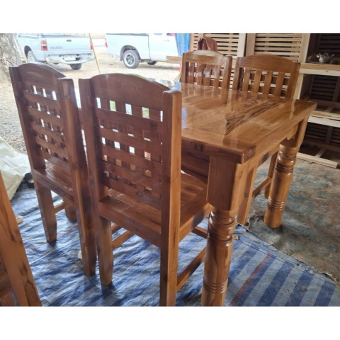 โต๊ะกินข้าว 4 ที่นั่ง ไม้สักทอง ชุดโต๊ะอาหารไม้สักทองแท้ ดีไซน์สวยคลาสสิกพร้อมเก้าอี้ฉลุ เพิ่มเสน่ห์ให้มุมทานอาหารของบ้าน เหมาะทั้งบ้านสไตล์ไทยร่วมสมัยและมินิมอล ด้วยโทนไม้ธรรมชาติที่ดูอบอุ่น นั่งสบาย ใช้งานได้ทุกวัน