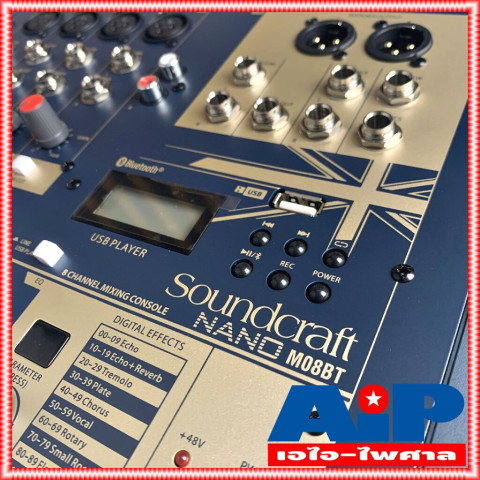 SOUNDCRAFT NANO M08BT MIXER มิกเซอร์อนาล็อกขนาดกะทัดรัด 8 ชาแนล ที่รวมความสะดวกของ Bluetooth และ USB ไว้ในตัว เหมาะสำหรับงานไลฟ์สด ร้องเพลง เวทีเล็ก โฮมสตูดิโอ หรือใช้งานกับคอมพิวเตอร์แบบครบจบในเครื่องเดียว ให้เสียงคมชัด ควบคุมง่าย พร้อมเอฟเฟ็กคุณภาพจาก Lexicon 32 โปรแกรม ช่วยยกระดับเสียงร้องและมิกซ์ของคุณให้ดูเป็นมืออาชีพ