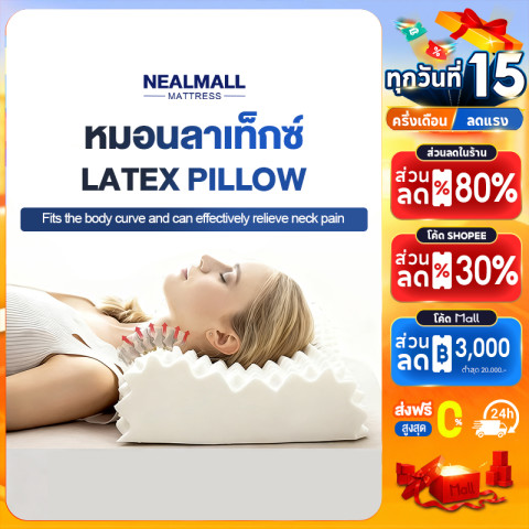 NEALMALL หมอนยางพารา Double Slopes รุ่น Soft (เกรดพรีเมี่ยม) หมอนยางพาราแท้ดีไซน์ “สโลปคู่” พร้อมทรง S-Curve รองรับคอ-ไหล่ตามหลักสรีรศาสตร์ ช่วยจัดแนวกระดูกสันหลังให้สมดุล ลดแรงกดทับระหว่างนอน เหมาะมากสำหรับคนที่มีอาการปวดคอ ไหล่ ตึงจากออฟฟิศซินโดรม หรือนอนแล้วตื่นมารู้สึกเมื่อยล้า พร้อม ปลอก/ซับในกันไรฝุ่น ช่วยลดโอกาสแพ้และระคายเคือง ให้คุณหลับสบายอย่างมั่นใจทุกคืน