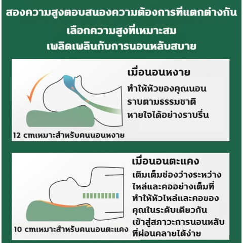 ดีไซน์ Double Slopes เลือกความสูงได้ 2 ระดับในใบเดียว รองรับท่านอนหงาย/ตะแคงได้ลงตัว