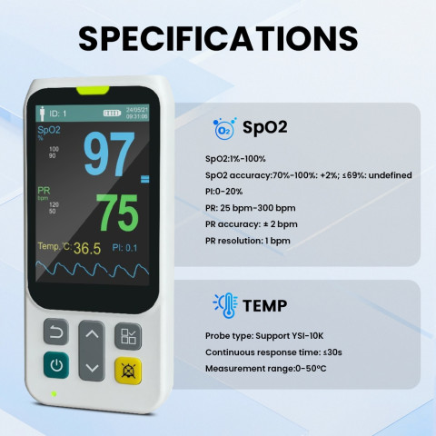 ความแม่นยำ SpO2: 70%–100% ±2% (≤69% ไม่ได้กำหนด)