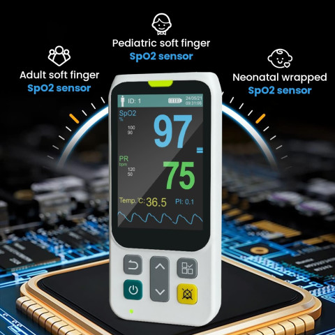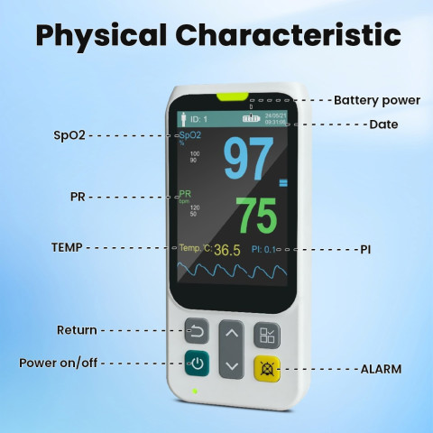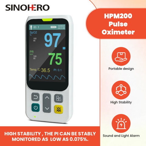 เครื่องวัดออกซิเจนปลายนิ้ว HPM200 (3 in 1) อุปกรณ์วัดสุขภาพสำหรับงานคลินิกและการดูแลที่บ้าน ครบจบในเครื่องเดียวด้วยการวัด SpO2 (ความอิ่มตัวของออกซิเจนในเลือด), PR (ชีพจร/อัตราการเต้นหัวใจ) และ PI (ดัชนีการไหลเวียน) เหมาะสำหรับการใช้งานในโรงพยาบาล คลินิกชุมชน สถาบันการแพทย์ และการติดตามอาการอย่างใกล้ชิดในครัวเรือน โดยออกแบบให้พกพาสะดวก ใช้ได้ทั้งการวัดเฉพาะจุดและการเฝ้าระวังต่อเนื่อง พร้อมระบบแจ้งเตือนเพื่อความมั่นใจทุกครั้งที่ใช้งาน