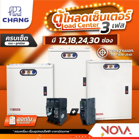 ตู้โหลดเซ็นเตอร์ 3 เฟส CHANG (ช้าง) แบบครบชุด เมนท์ + ลูกย่อย 3P / Load Center รุ่น Plug-on ราคา 8,690.00 บาท เหมาะสำหรับงานระบบไฟฟ้า 3 เฟสในบ้าน อาคารพาณิชย์ โรงงานขนาดเล็ก หรือหน้างานรับเหมา ที่ต้องการตู้ที่แข็งแรง ปลอดภัย และจัดวงจรได้เป็นระเบียบ พร้อมรองรับการขยายวงจรในอนาคต