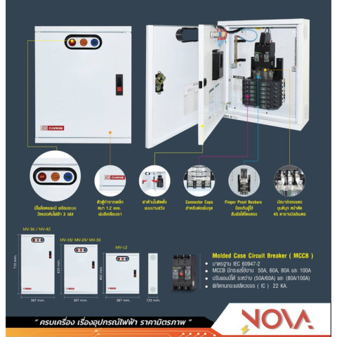 ลูกย่อยเลือกขนาดได้ (แจ้งทางแชทได้) สามารถจัดสเปคให้ตรงกับโหลดหน้างาน ทั้งวงจรแสงสว่าง ปลั๊ก แอร์ ปั๊มน้ำ มอเตอร์ และอุปกรณ์ 3 เฟส