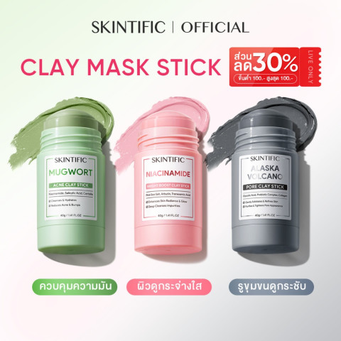 SKINTIFIC Clay Mask Stick Mugwort มาส์กโคลนแบบแท่งที่ใช้งานง่าย ช่วยดูดซับความมันส่วนเกินและสิ่งสกปรกที่อุดตันในรูขุมขน ทำความสะอาดผิวได้ล้ำลึกแต่อ่อนโยน เหมาะสำหรับคนผิวมัน ผิวเป็นสิวง่าย และผู้ที่ต้องการผิวดูเรียบเนียนกระจ่างใสในขั้นตอนเดียว