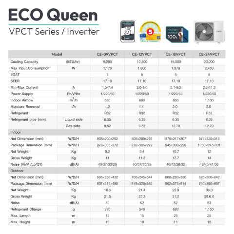 Outdoor: 800×280×550 มม.ขนาด (Dimension) รุ่น CE-24VPCT