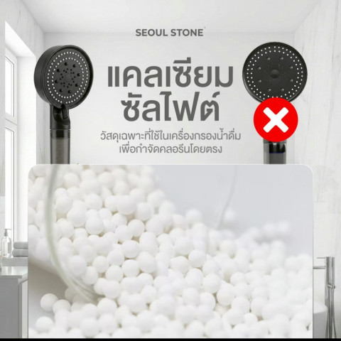 Calcium Sulfite Stone ช่วยดักจับคลอรีน พร้อมเพิ่มแร่ธาตุ CA, MG และช่วยปรับสมดุลค่า pH ให้ใกล้เคียงน้ำแร่