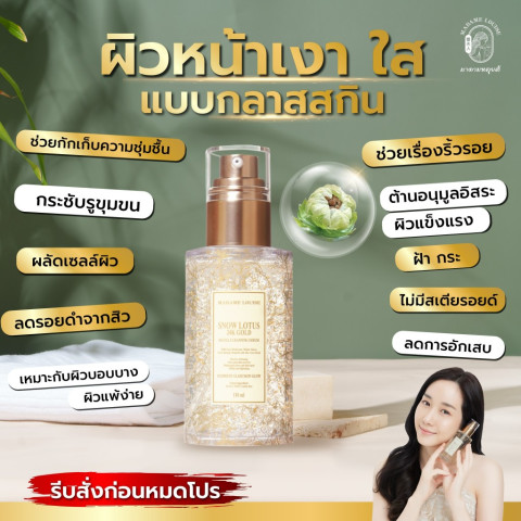 โดดเด่นด้วย บัวหิมะ และ ทองคำ 24K ช่วยดูแลเรื่อง ริ้วรอย, กระชับรูขุมขน, ฝ้า กระ และ สิว
