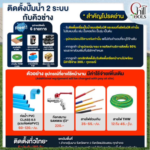สามารถซื้อบริการติดตั้งปั๊มน้ำ 2 ระบบ เพิ่มในราคา 1,900 บาท (เงื่อนไขเป็นไปตามคิวช่าง)