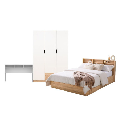 Koncept Furniture ชุดห้องนอน ขนาด 5 ฟุต รุ่น Haley สีขาว เซทห้องนอนสไตล์โมเดิร์นที่จัดวางได้ลงตัว ช่วยให้ห้องดูโปร่ง สว่าง และเป็นระเบียบในคราวเดียว ครบจบในชุดเดียวทั้งนอน เก็บของ และทำงาน เหมาะสำหรับคอนโด อพาร์ตเมนต์ หรือห้องนอนบ้านที่ต้องการฟังก์ชันใช้งานครบแบบคุ้มค่า