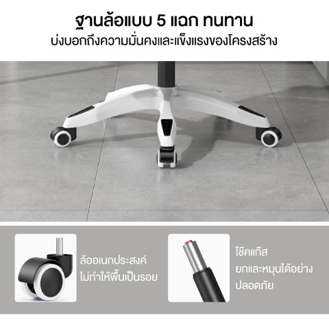 หมุนได้ 360° + ล้อเลื่อน เคลื่อนตัวสะดวก ใช้งานคล่องตัวในโต๊ะทำงาน