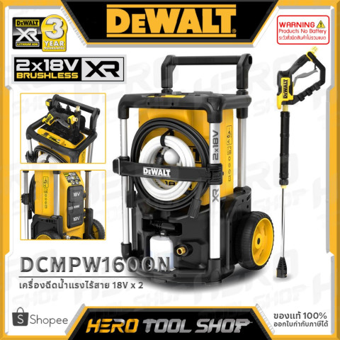 DEWALT เครื่องฉีดน้ำแรงดันสูง ไร้สาย 20V Max. (18V) x 2 รุ่น DCMPW1600N (110 บาร์) — เฉพาะตัวเครื่อง ไม่รวมแบตเตอรี่