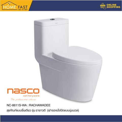 NASCO สุขภัณฑ์ชักโครกชิ้นเดียว Siphon Jet 3/6L สีขาว รุ่น Rachawadee (NC-8611S-WA) ราคา 6,690.00 บาท